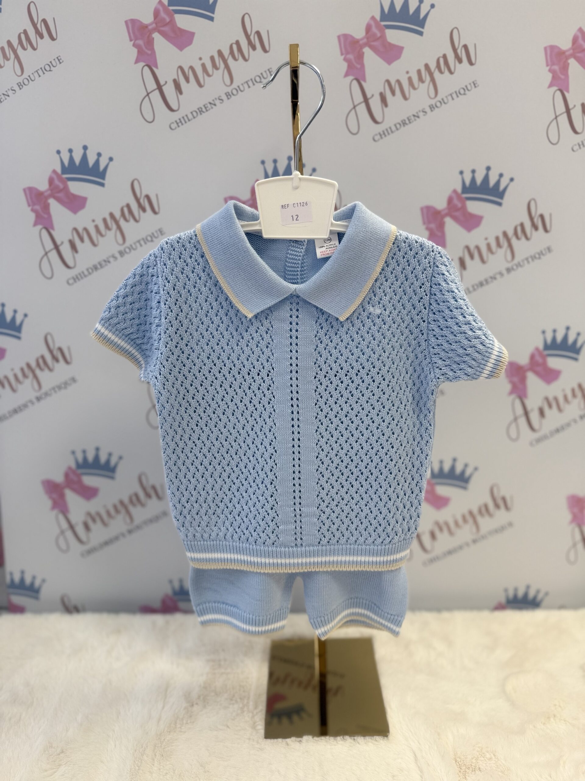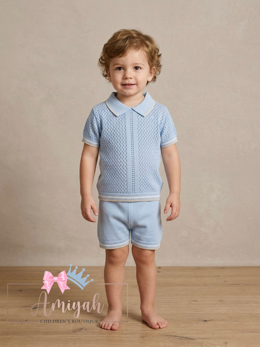 Boys blue v shorts set