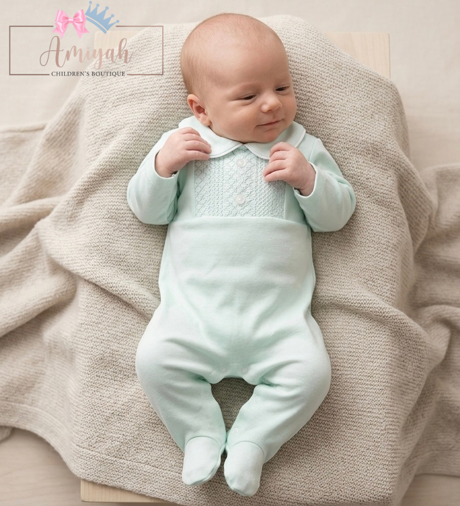 Mint Detailed Babygrow