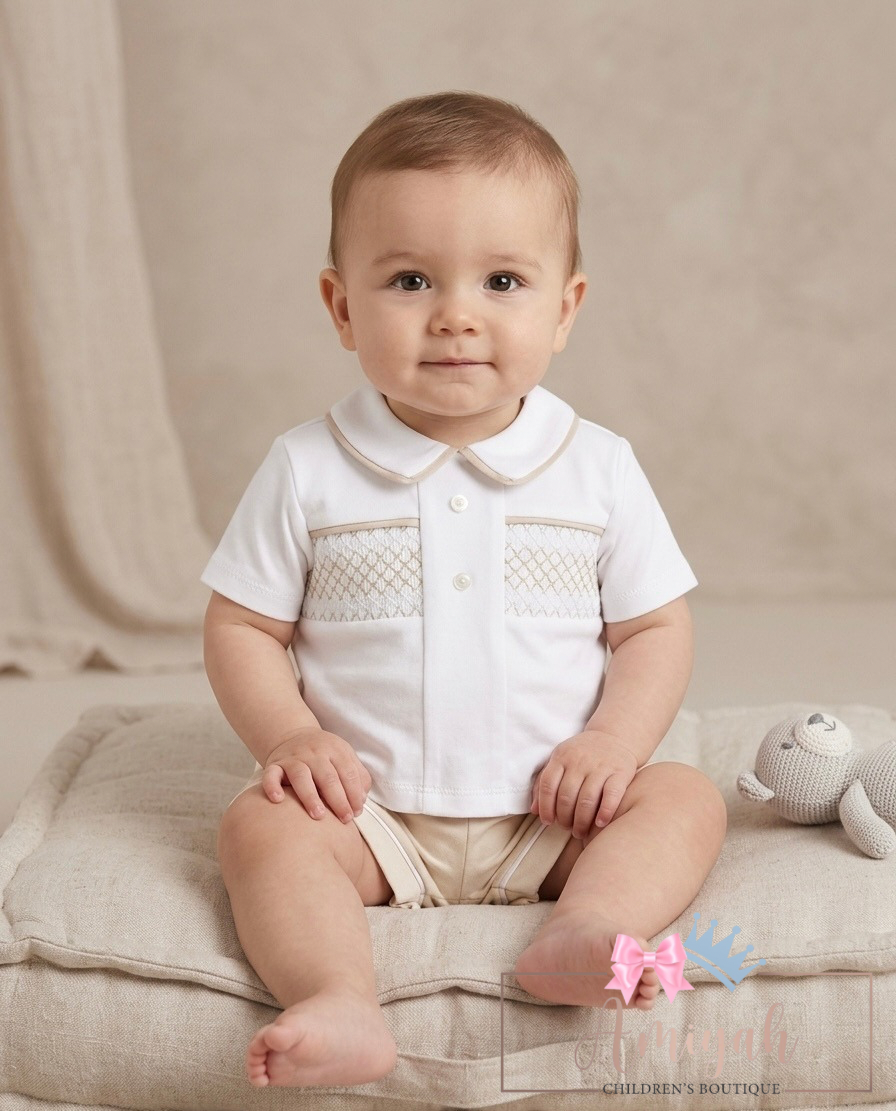 Beige Smocked Short 2 Piece Set