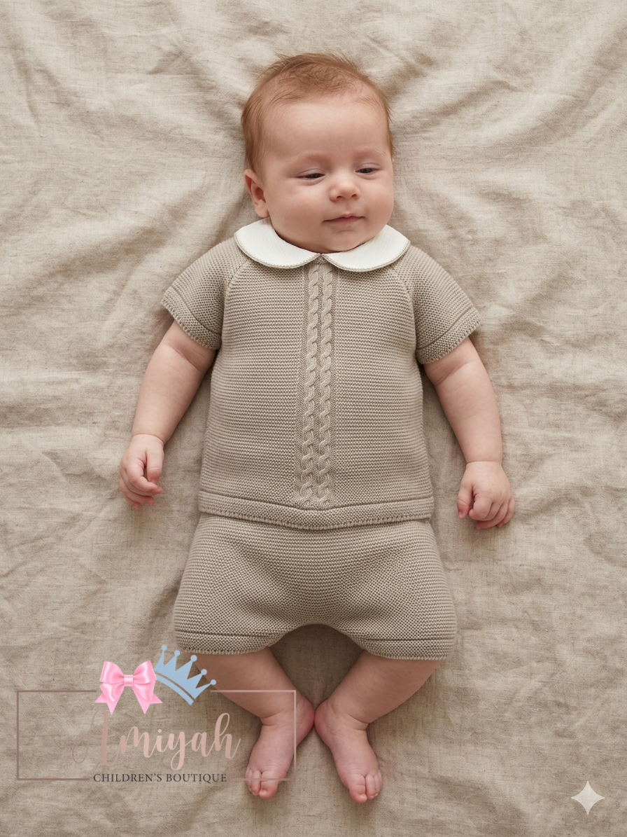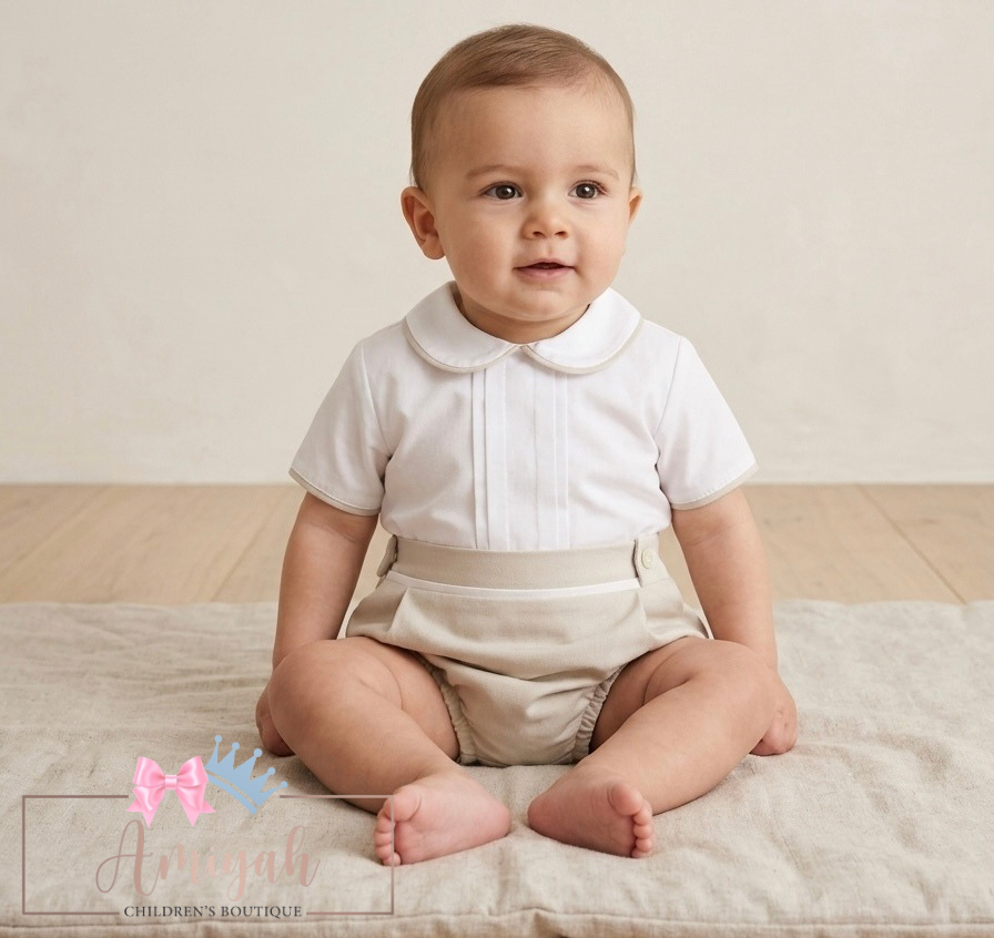 Beige boys v shorts set