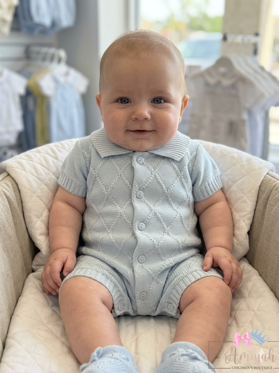 Blue button knitted romper