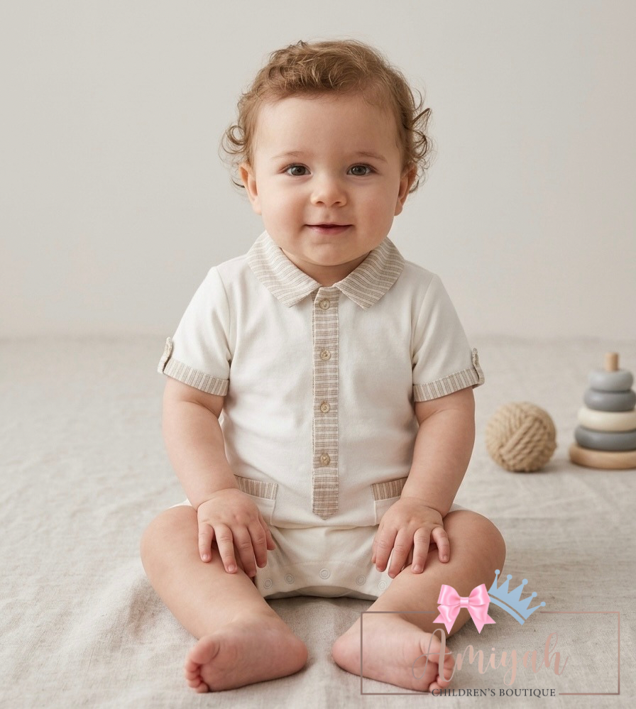 Ivory & Beige Trim Romper