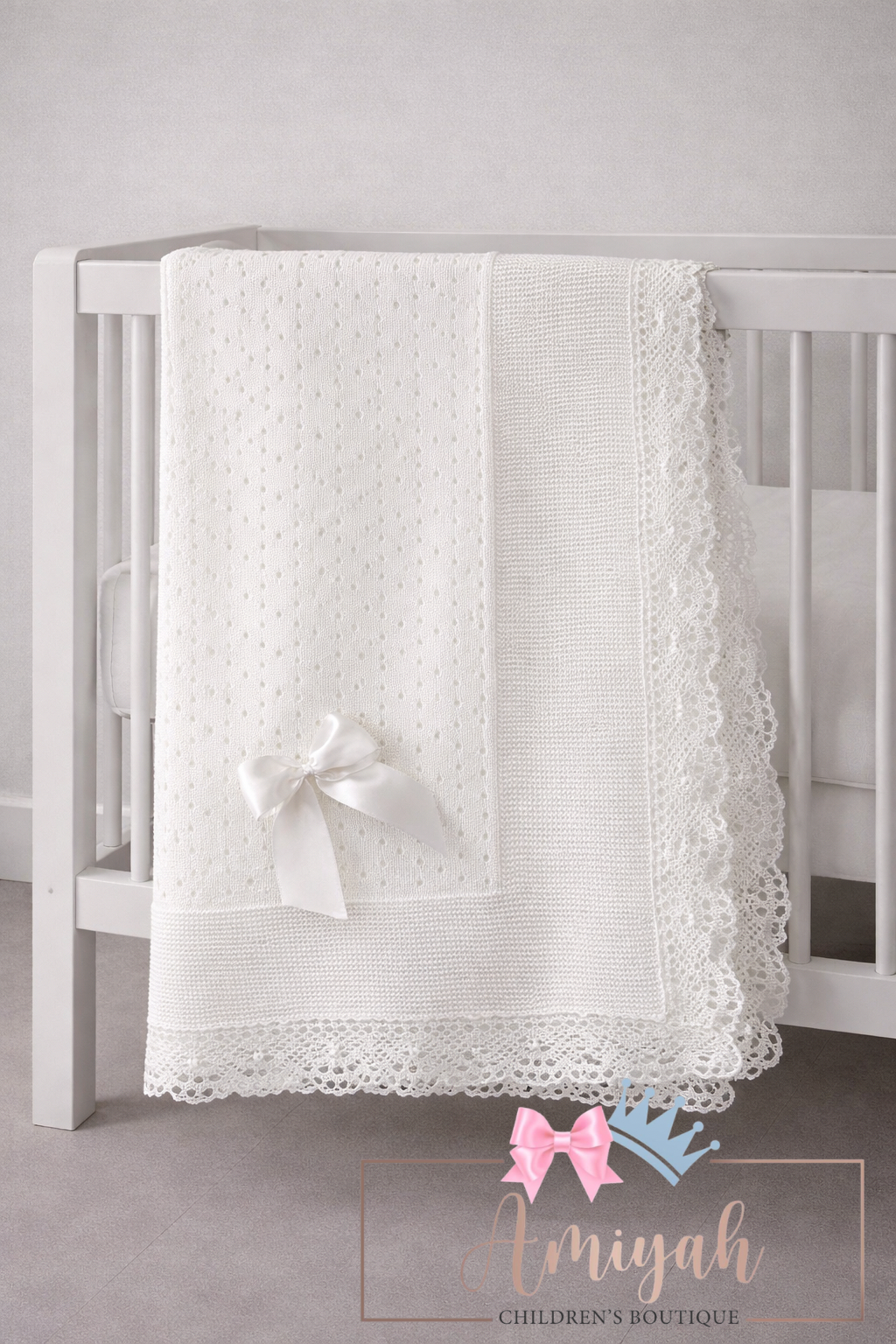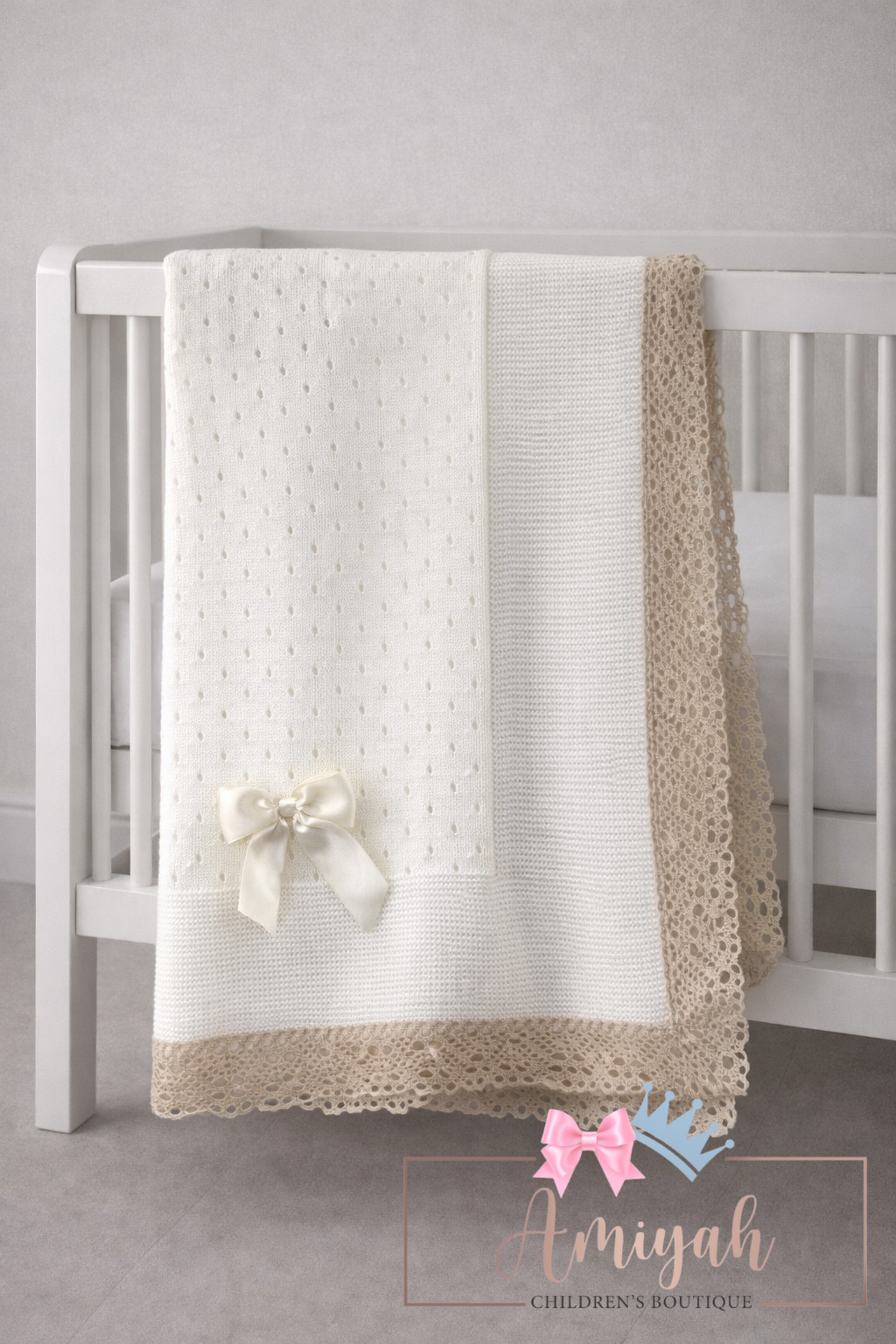 Ivory Lace Trim Knitted Blanket