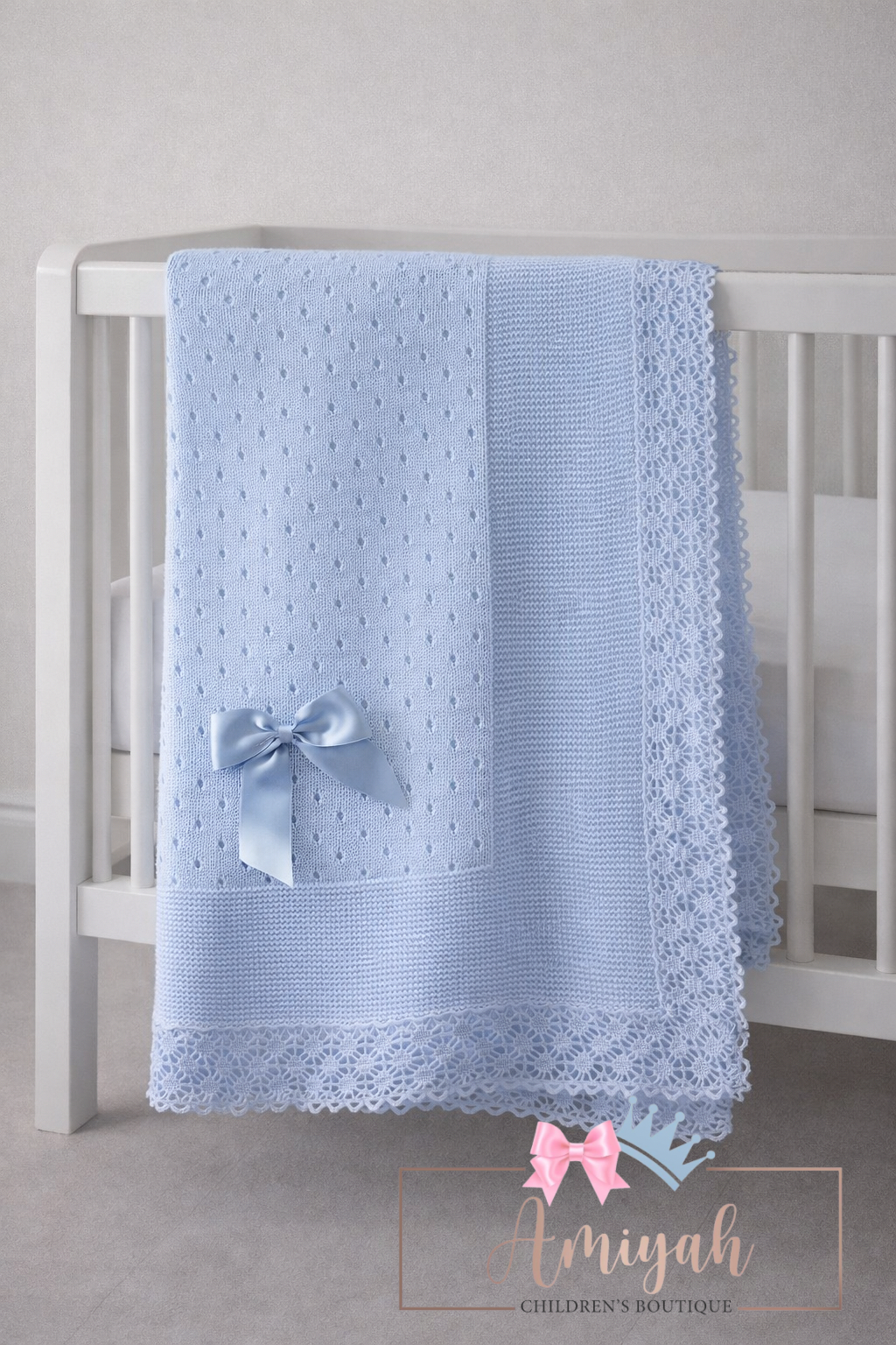 Blue Lace Trim Knitted Blanket