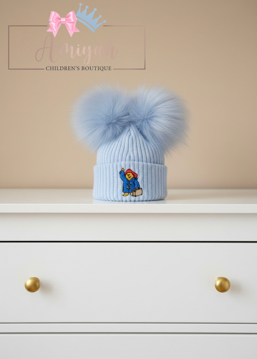 Blue Bear Pom Pom Hat