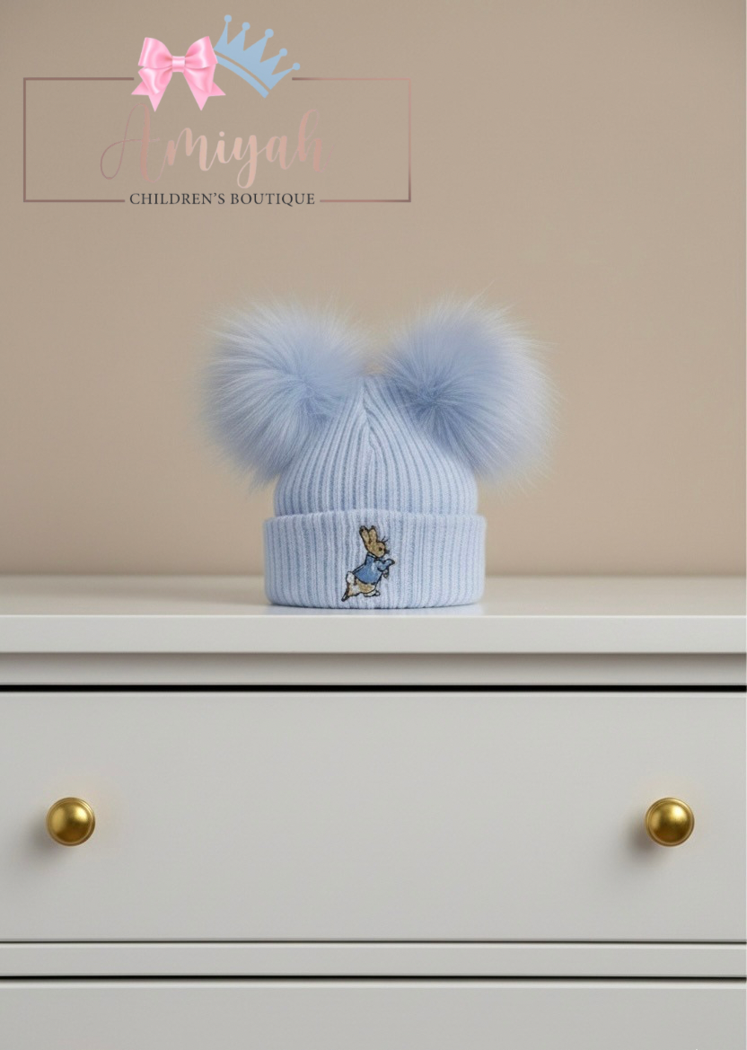 Blue Rabbit Pom Pom Hat