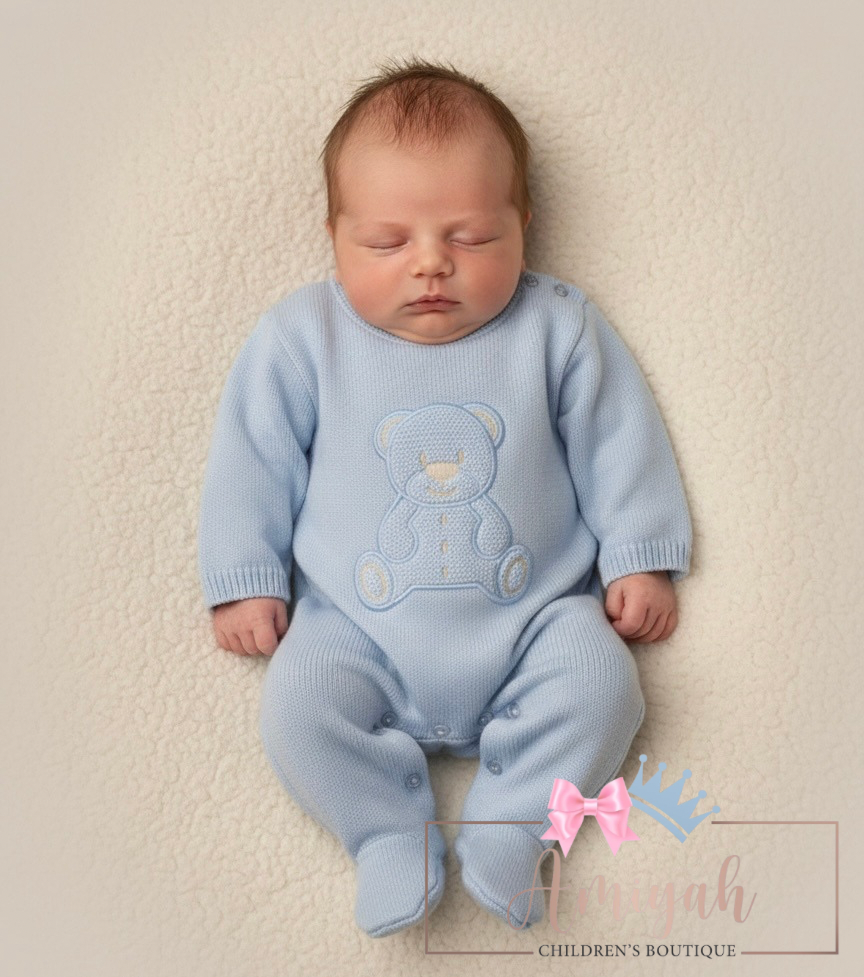 Blue Bear Knitted Babygrow