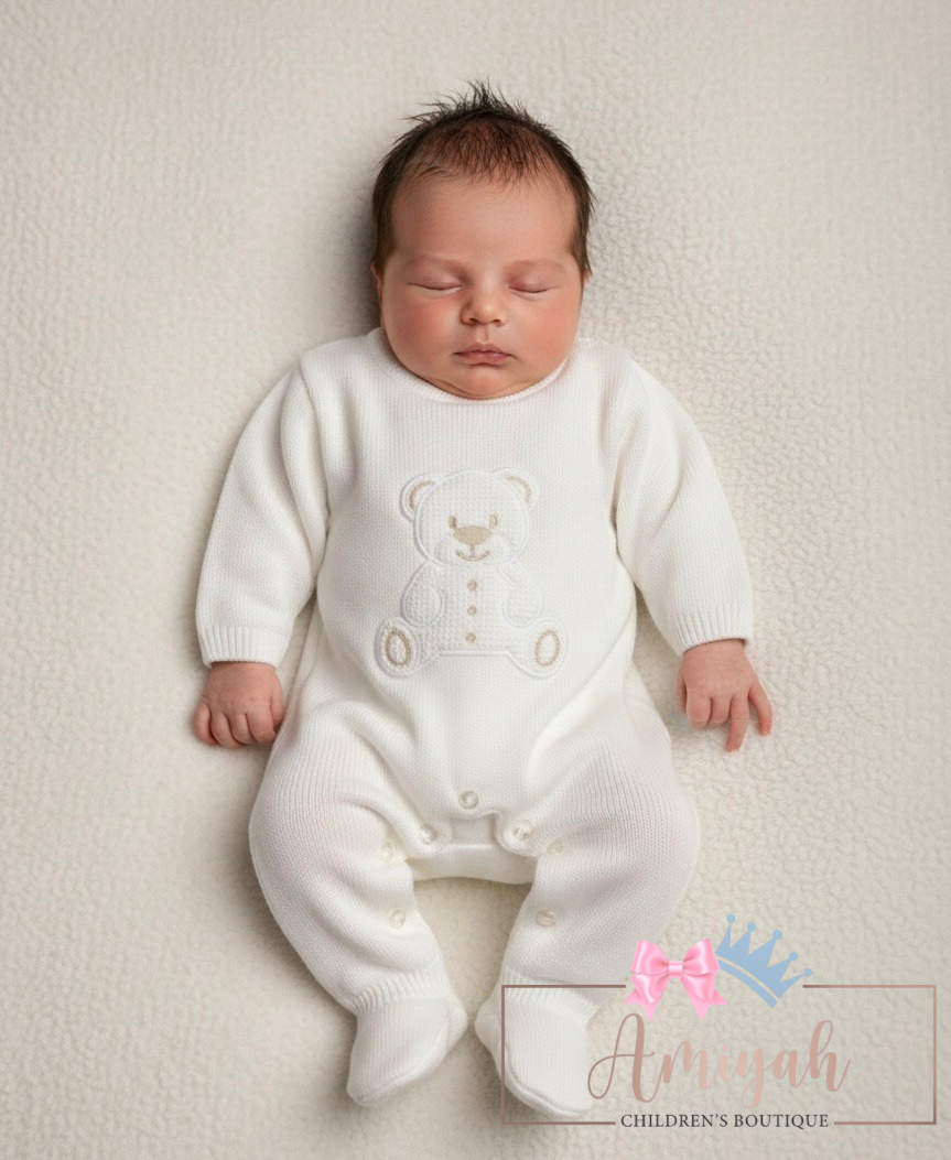 White Bear Knitted Babygrow