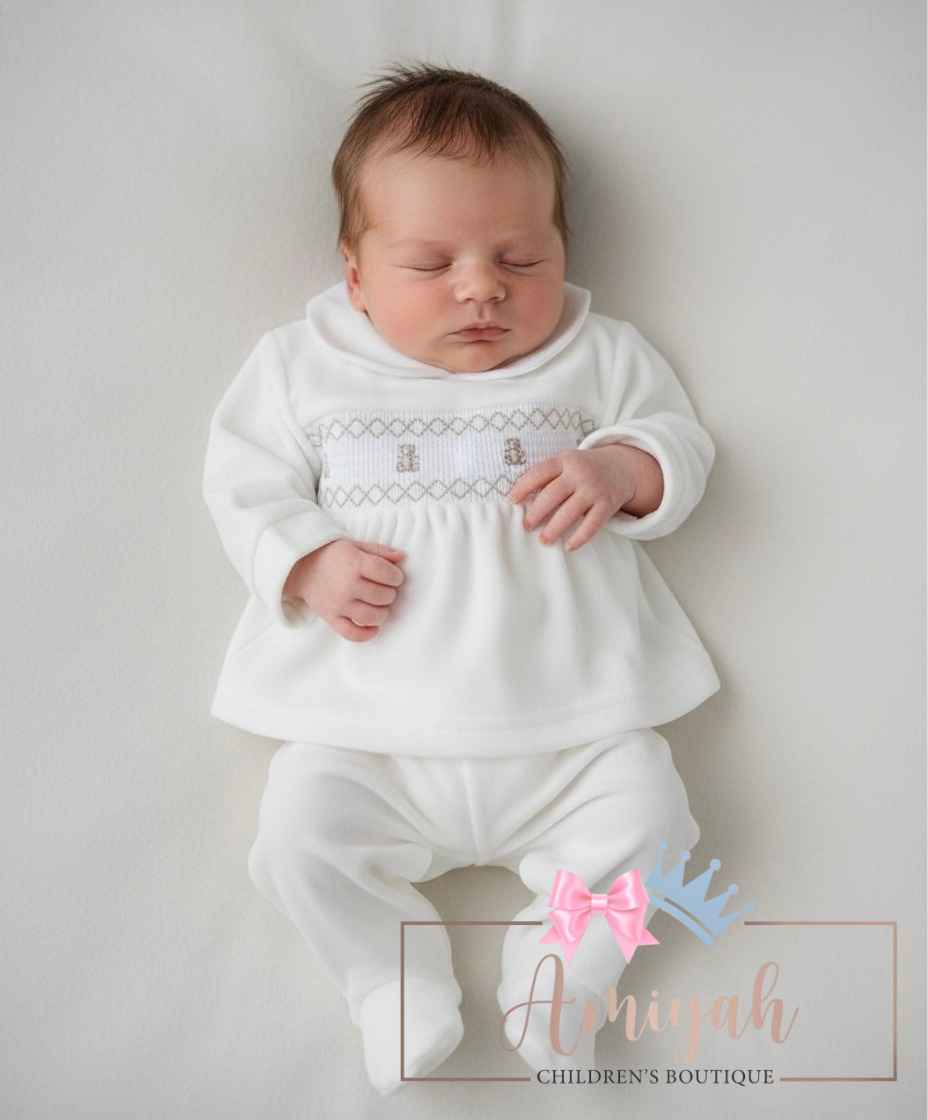 Ivory Smocked Teddy 2 Piece Set