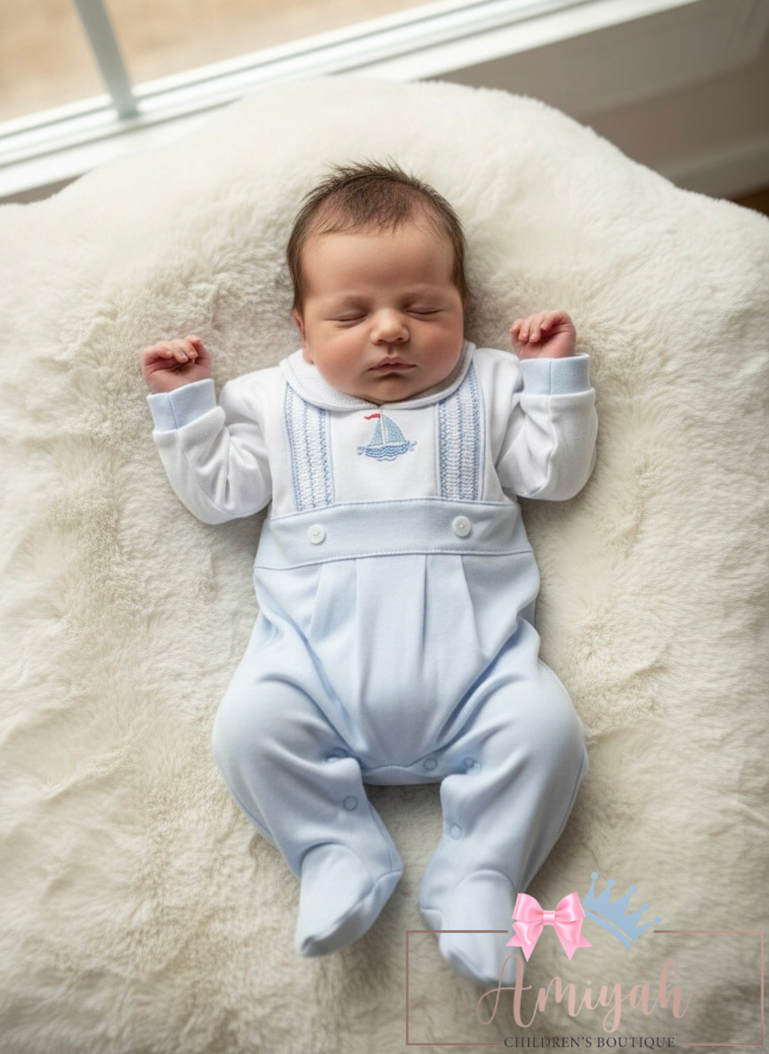 Blue Boat Detailed Babygrow