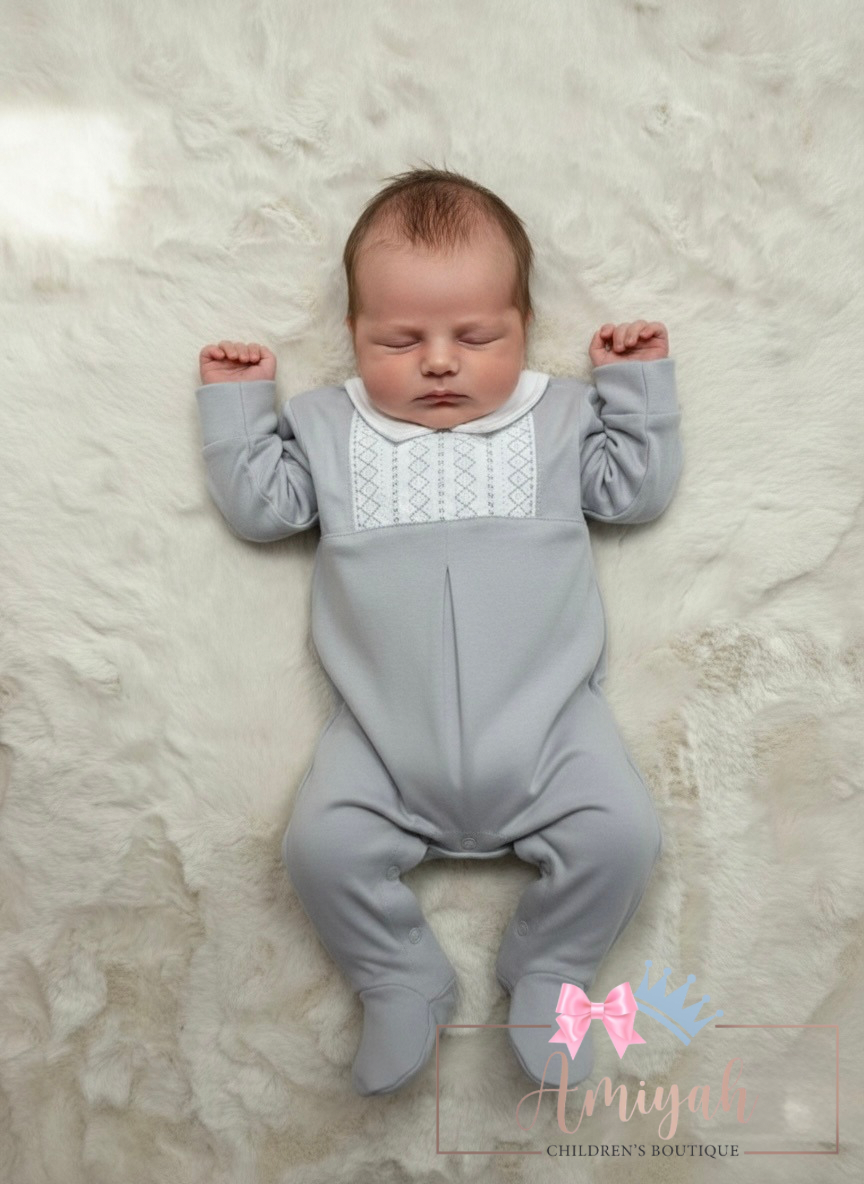 Grey Smocked Babygrow