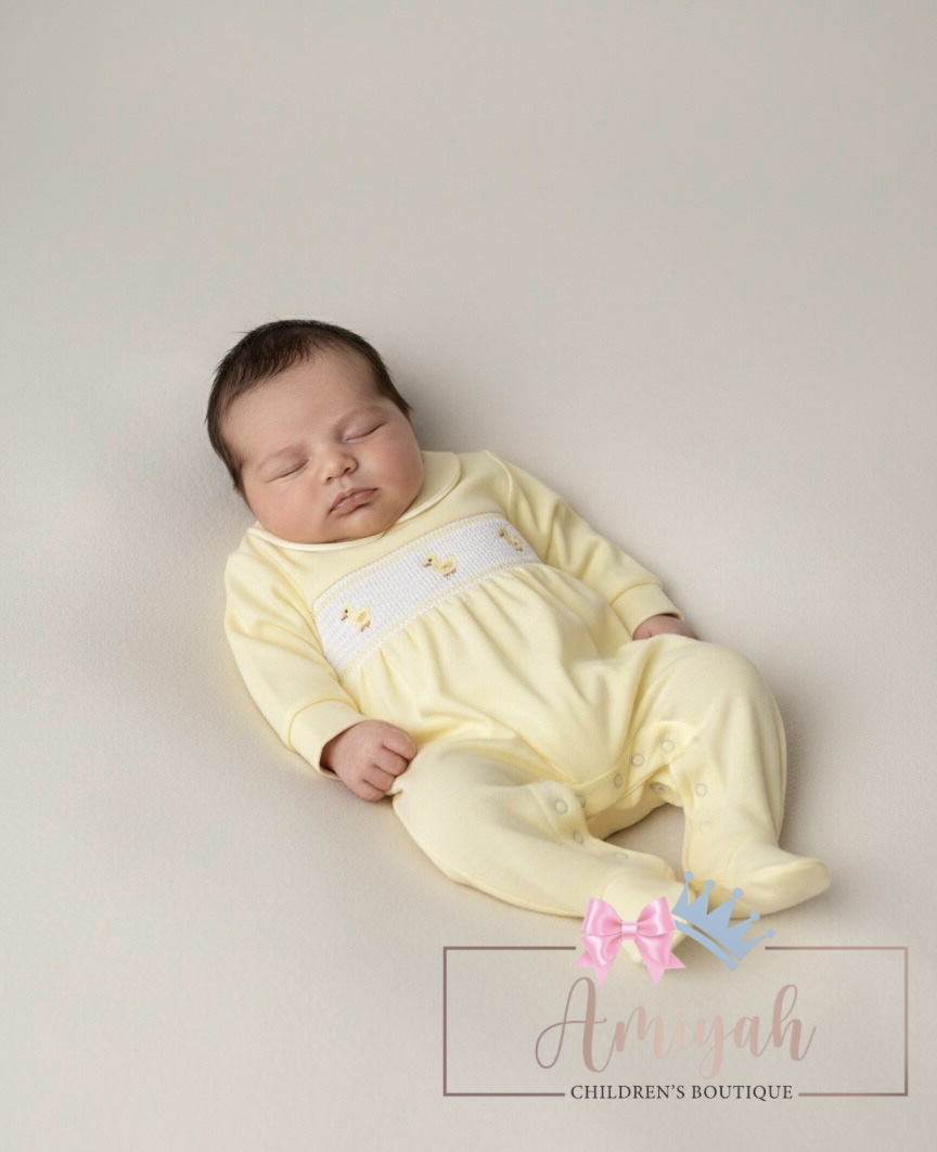 Yellow Smocked Duck Babygrow