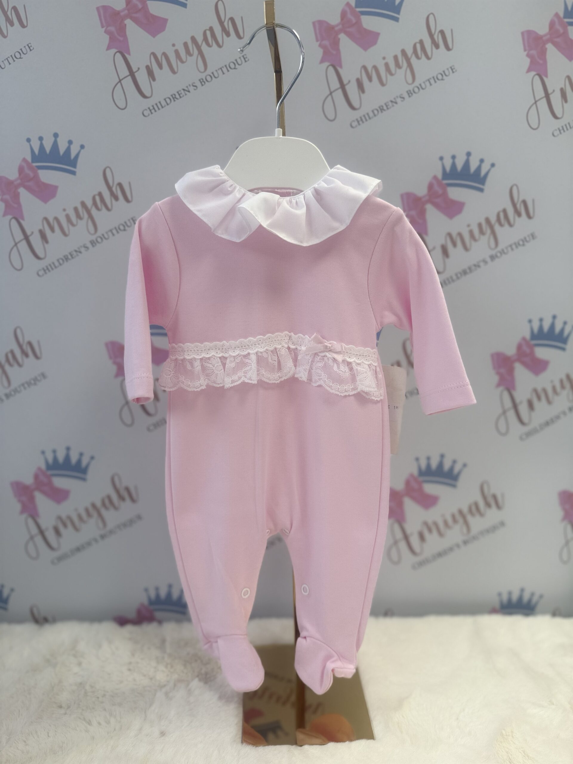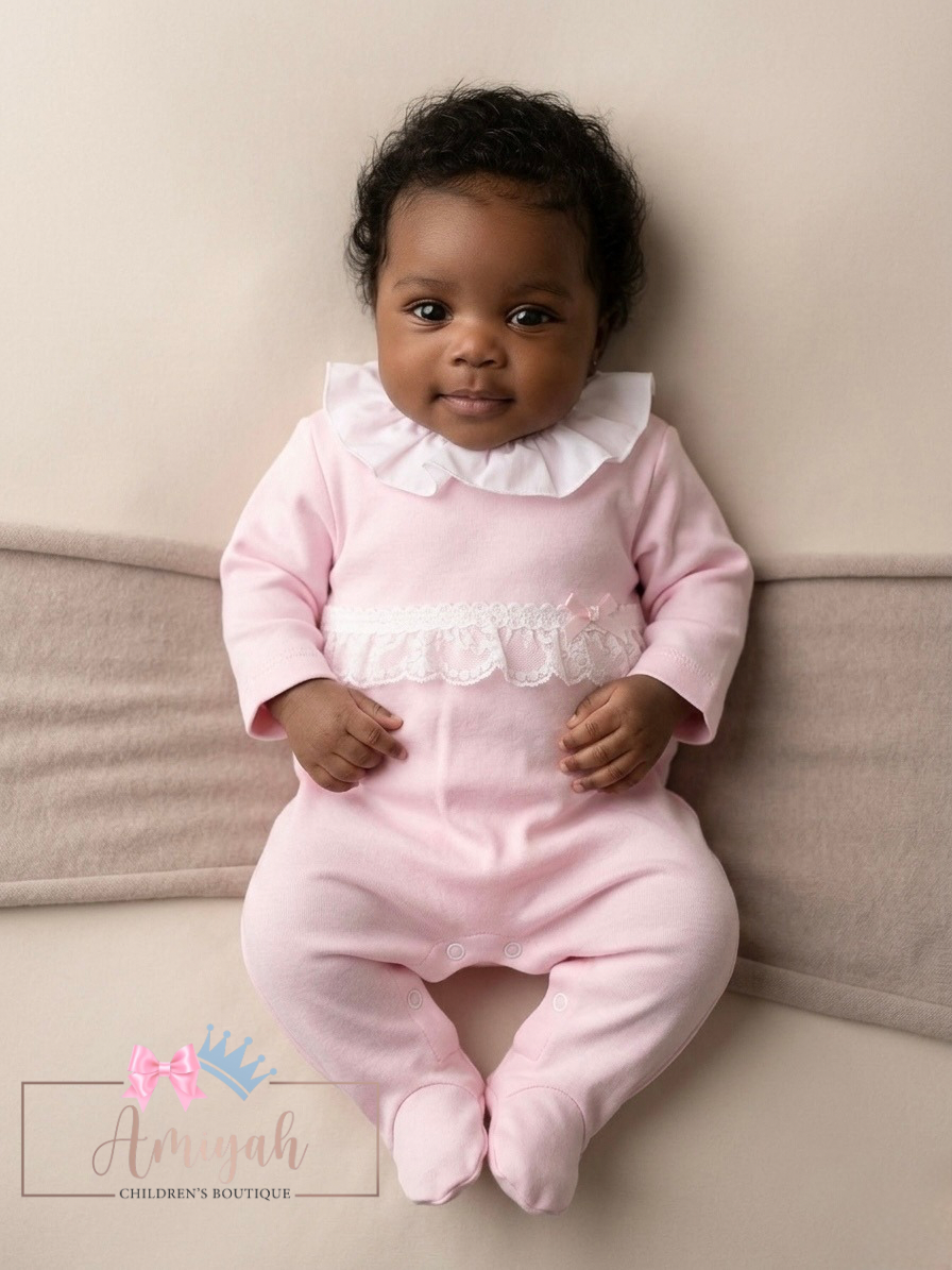 Pink Babygrow With Lace & Bow Detail
