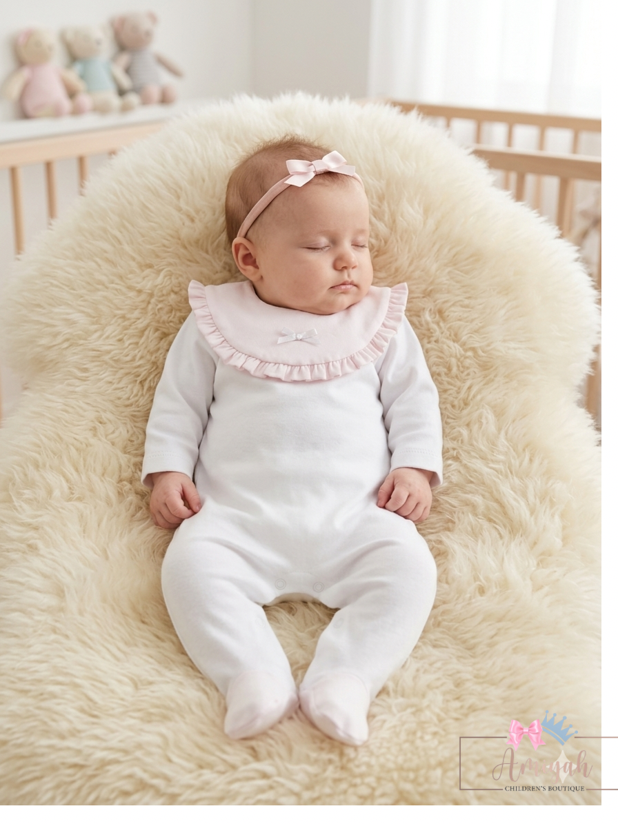 Pink & White Frill Bow Babygrow
