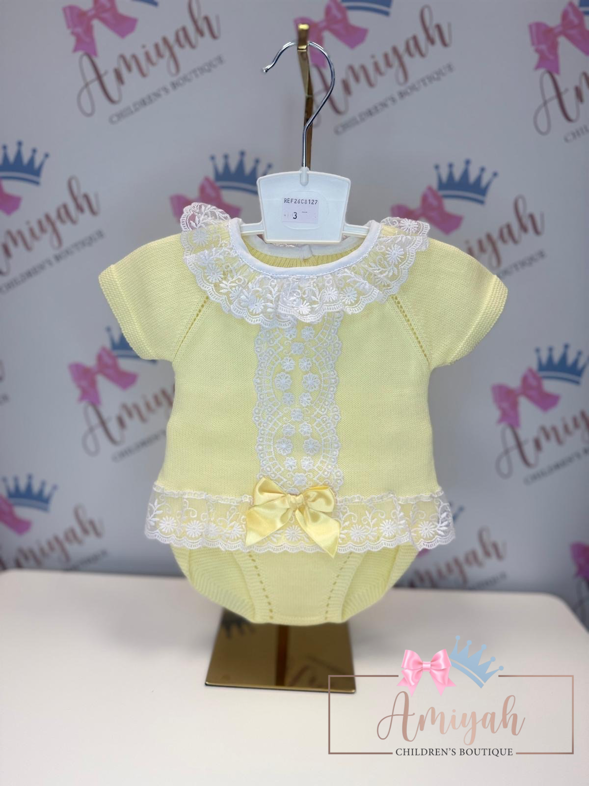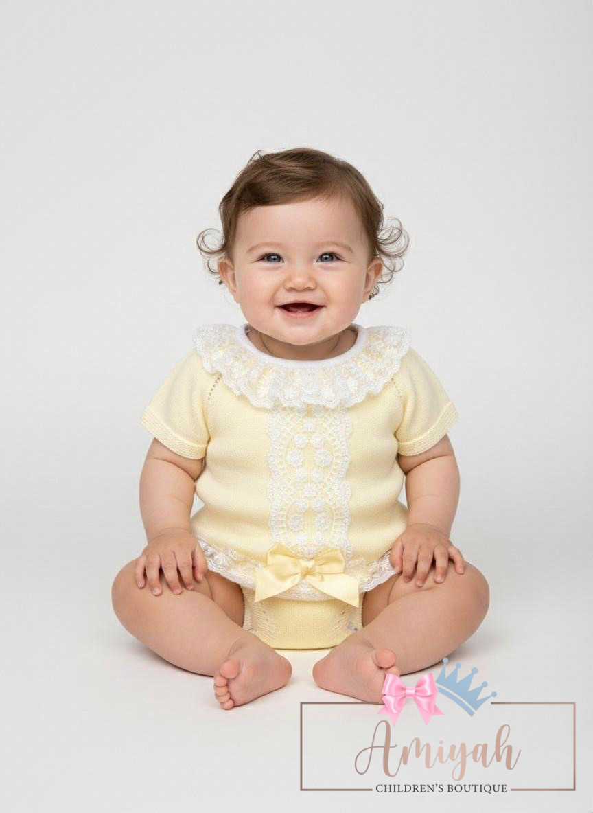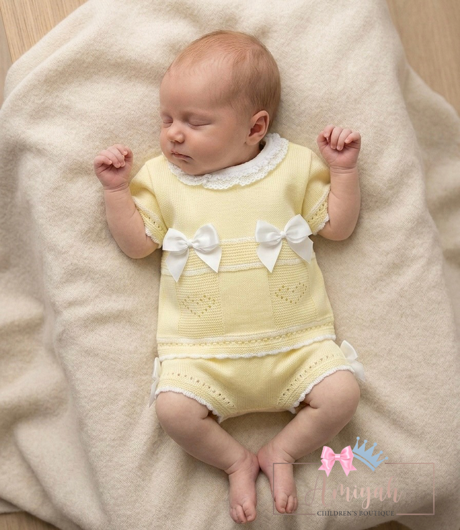 Lemon Double Bow Knitted Shorts Set