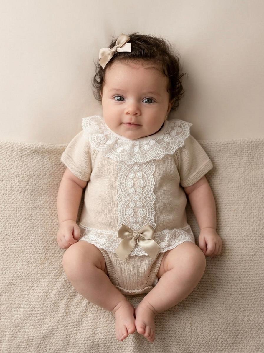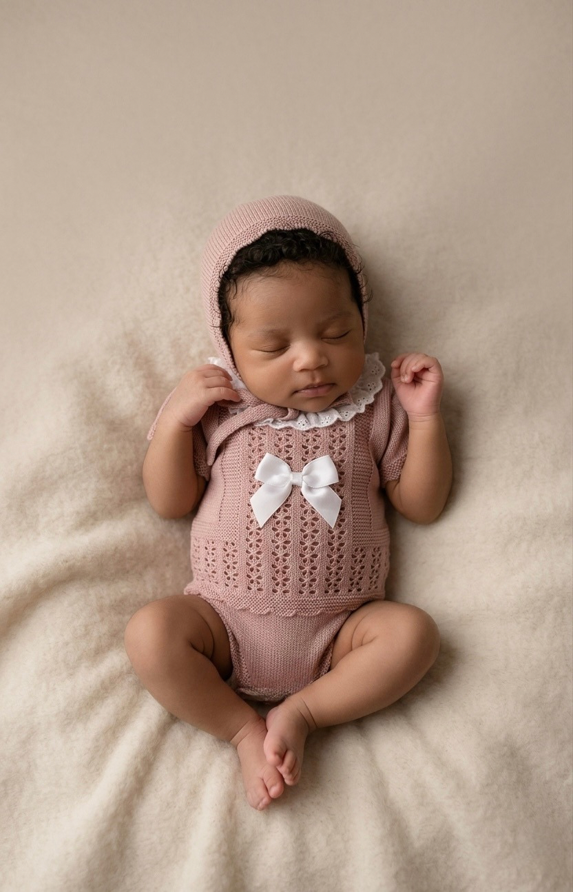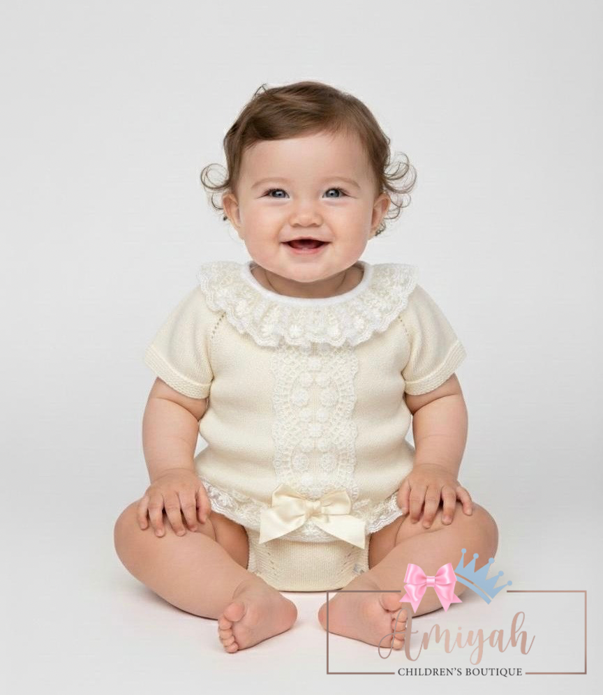 Ivory & Pink Knitted Romper