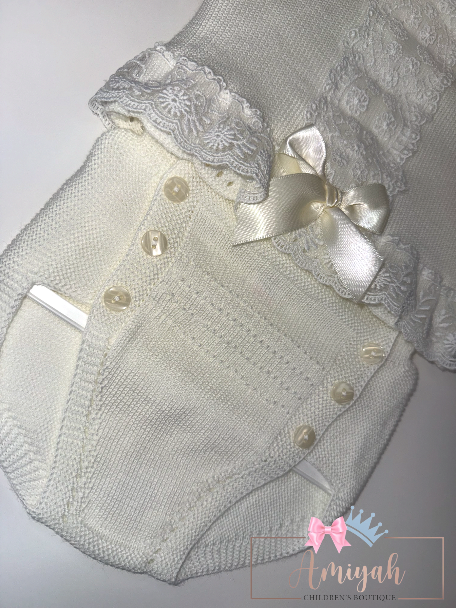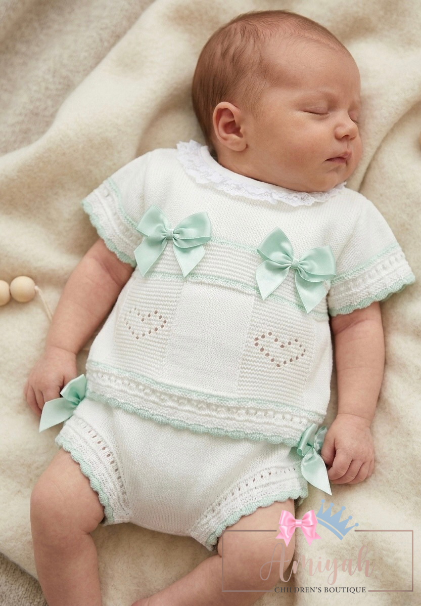 Ivory & Mint Double Bow Knitted Shorts Set