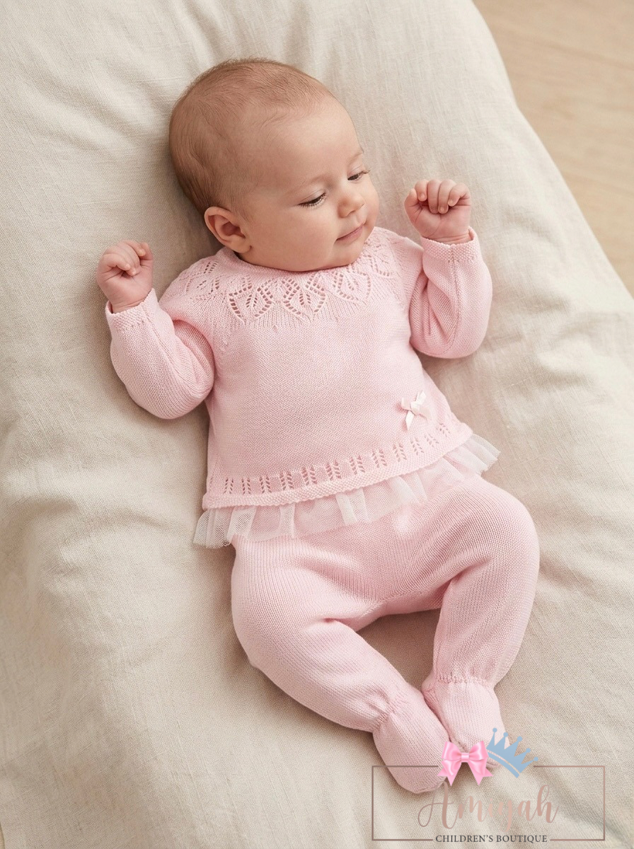 Pink Tulle Fine Knitted 3 Piece Set