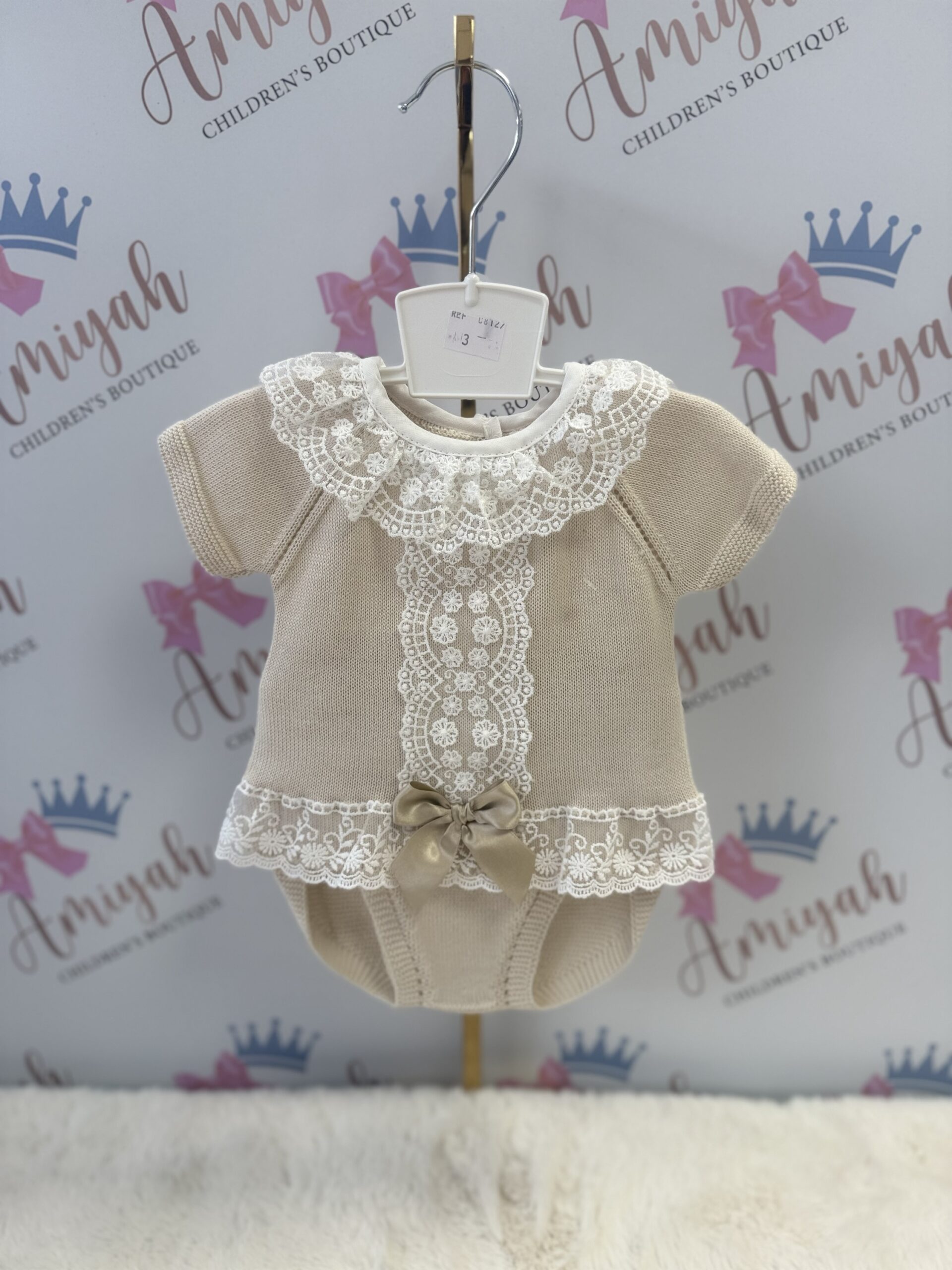 Lilac bow knitted three piece set