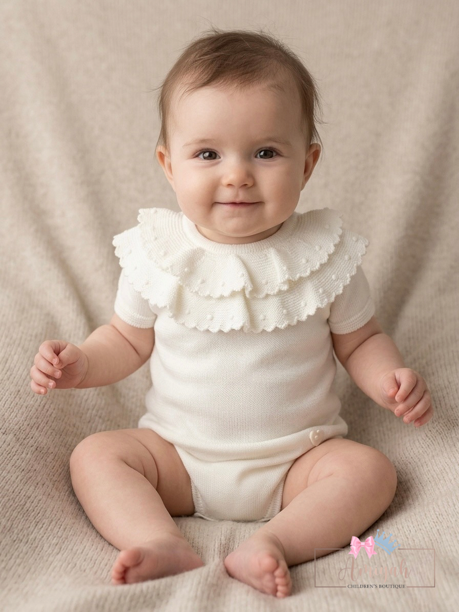 Cream knitted double collar romper