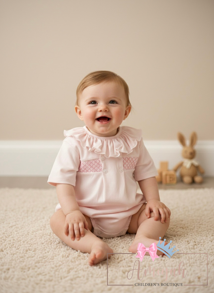 Pink Frill Smocked Cotton Romper