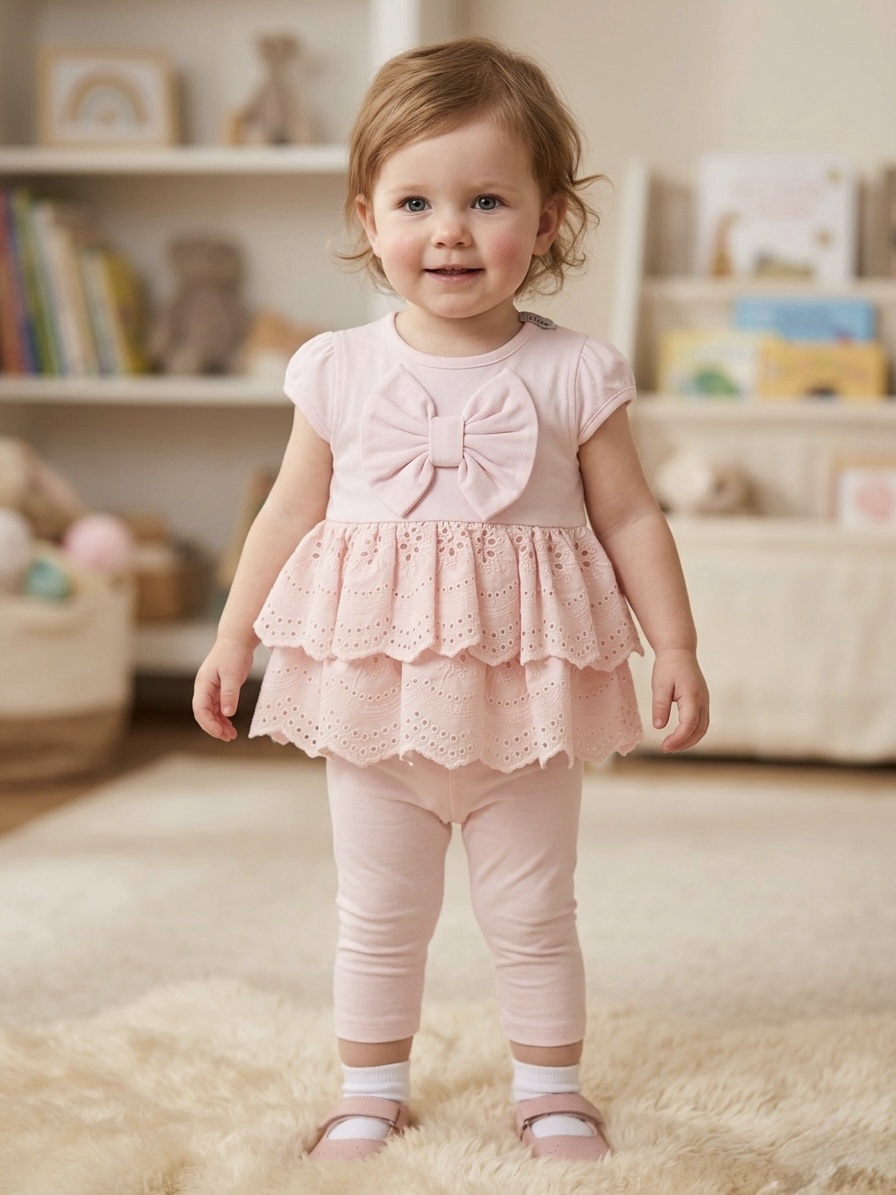 Pink bow leggings set girls