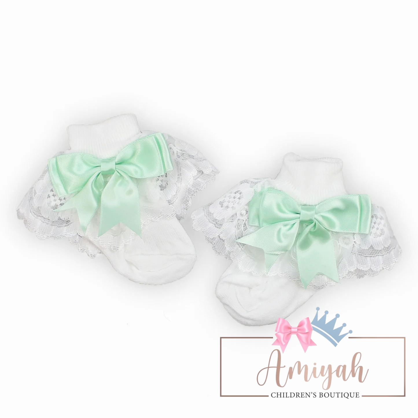 Mint Frill & Bow Ankle Socks