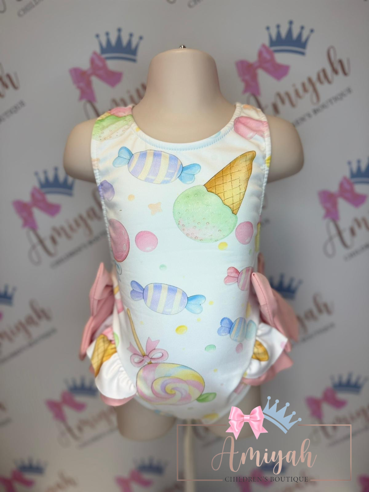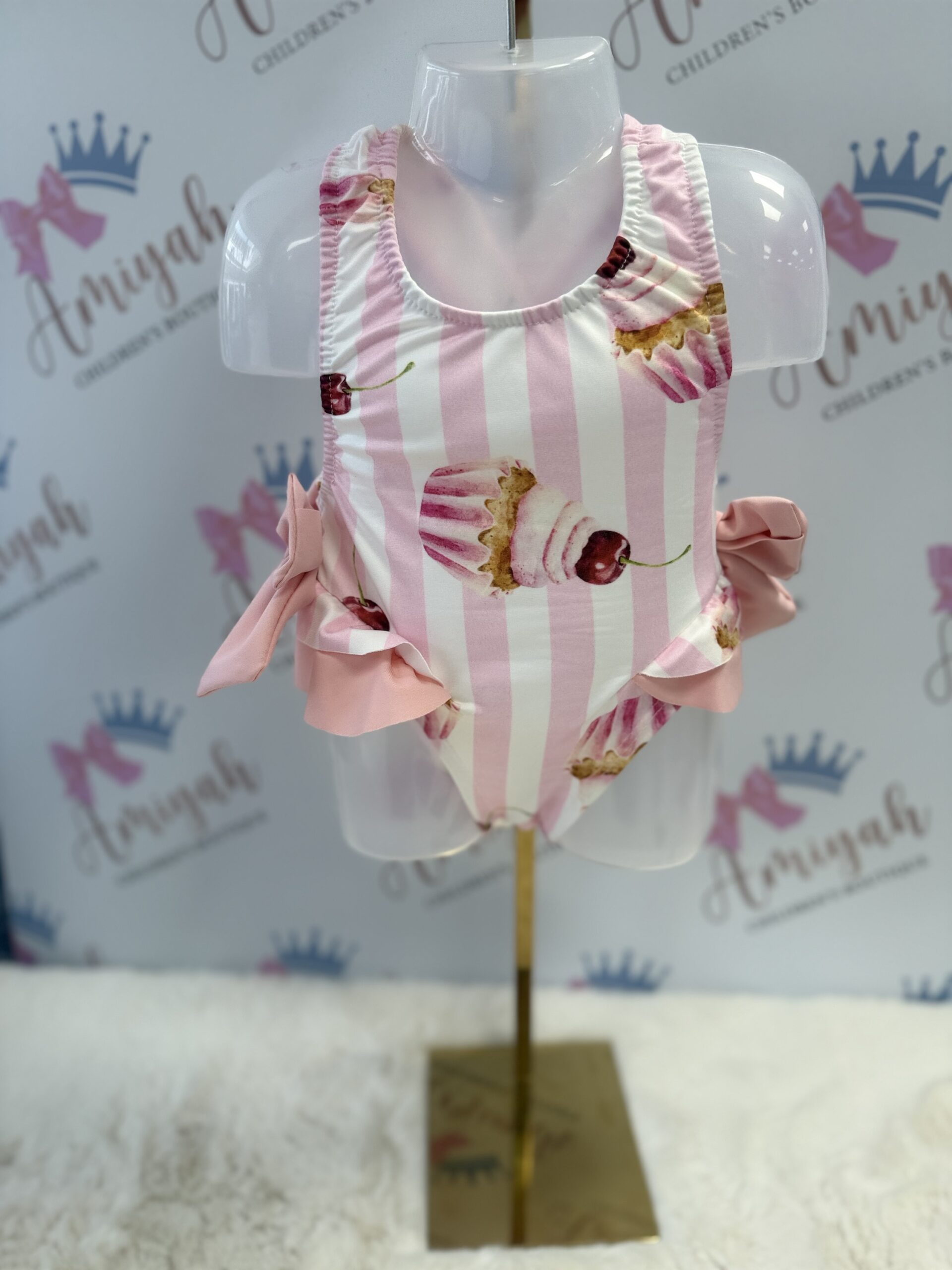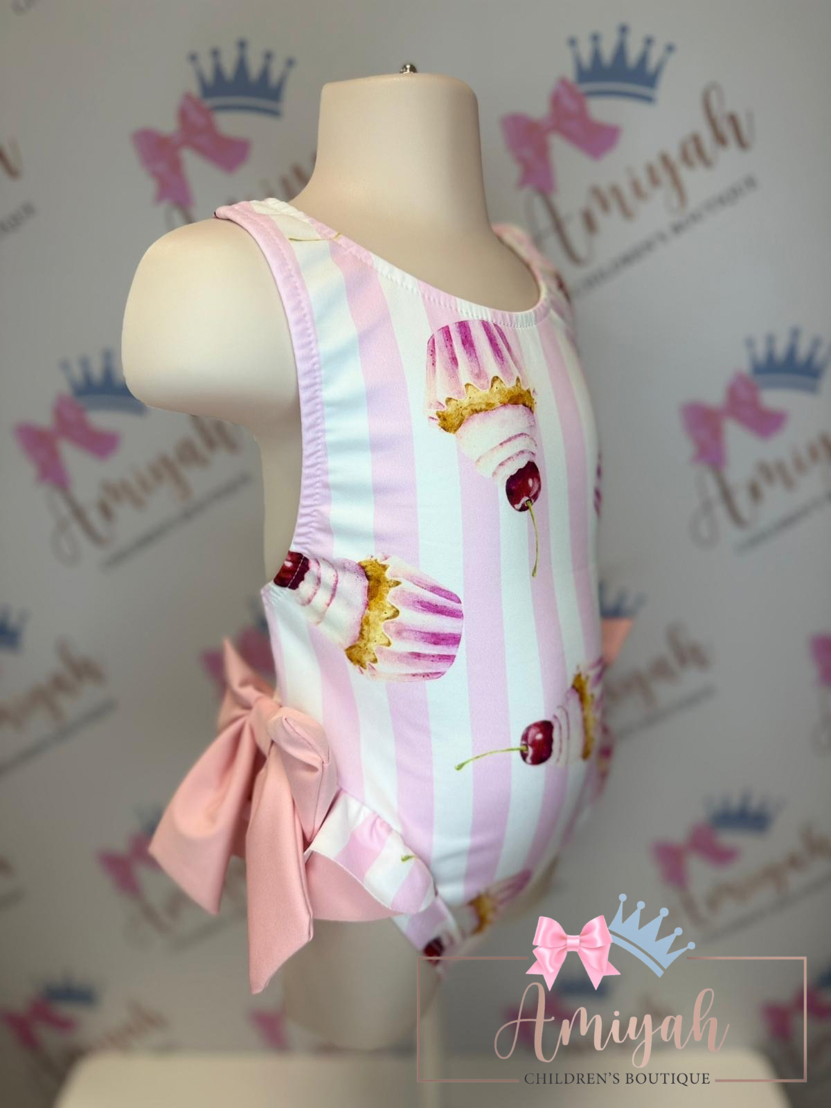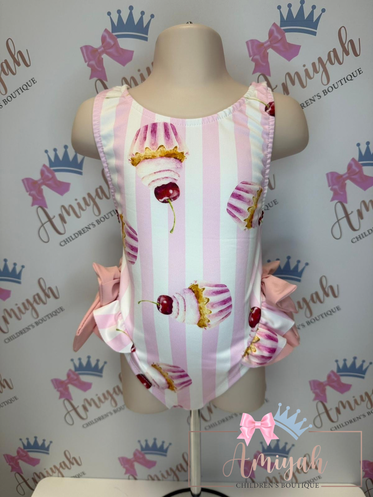 Cherry Cupcake Stripe One-Piece Swimsuit