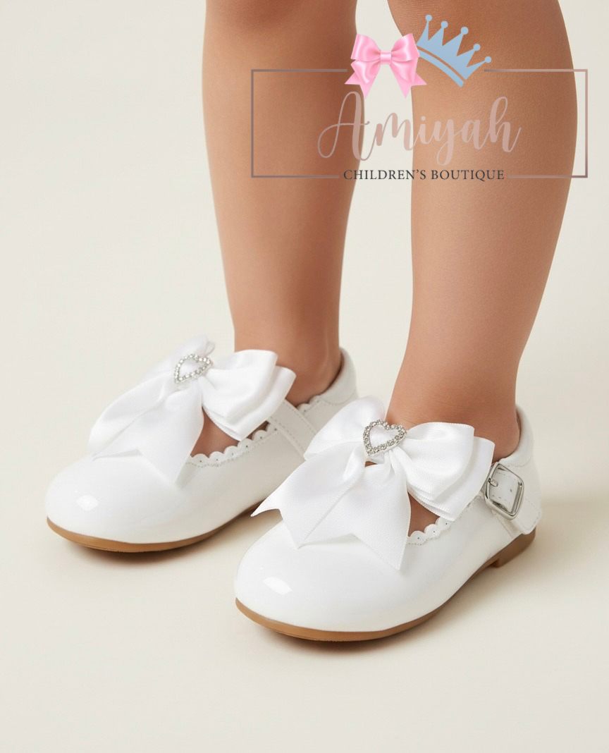 White Diamanté Heart Bow Shoes